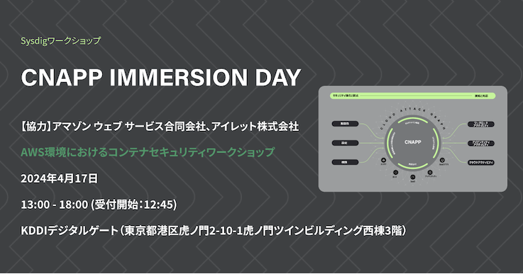 4月17日に、Sysdig のワークショップイベント「CNAPP IMMERSION DAY」が開催されました。