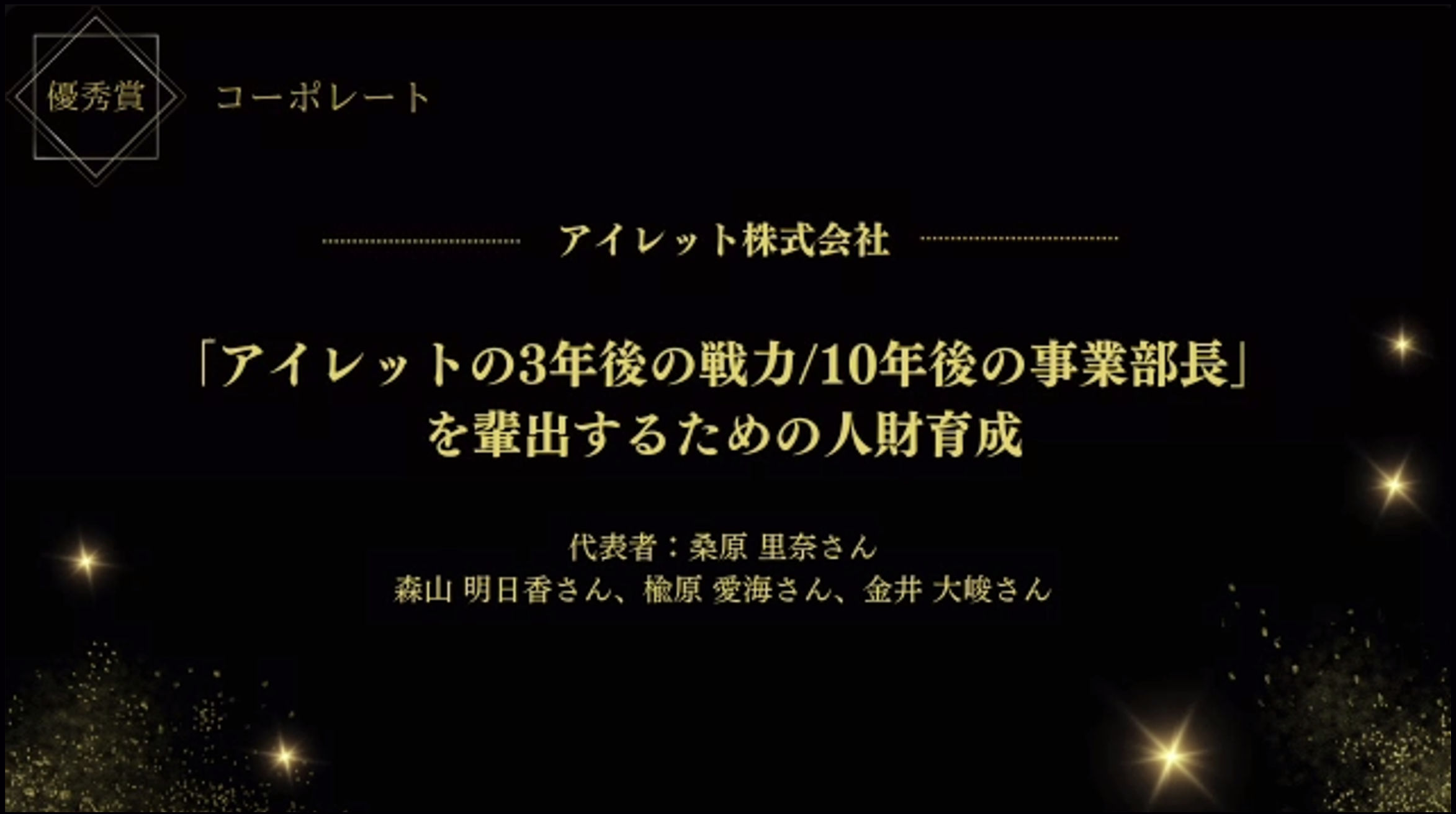 その中で、第一回 Divergence Awards が発表され、アイレットの新卒育成グループが「コーポレート部門 優秀賞」を受賞しました!