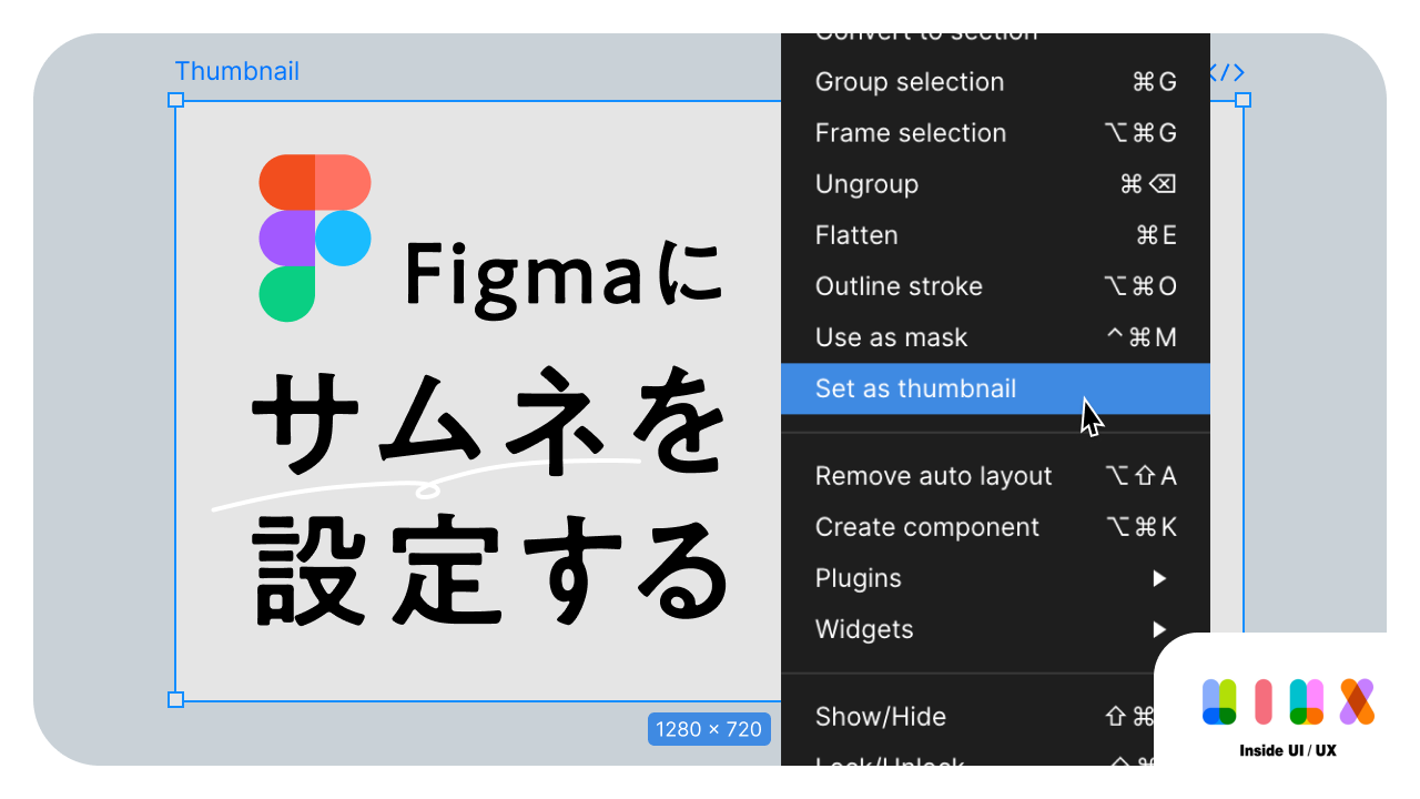 この時Groupで囲んだものだと Set as thumbnail の選択肢が出てこなかったので、Frameで作る必要がありそうです。