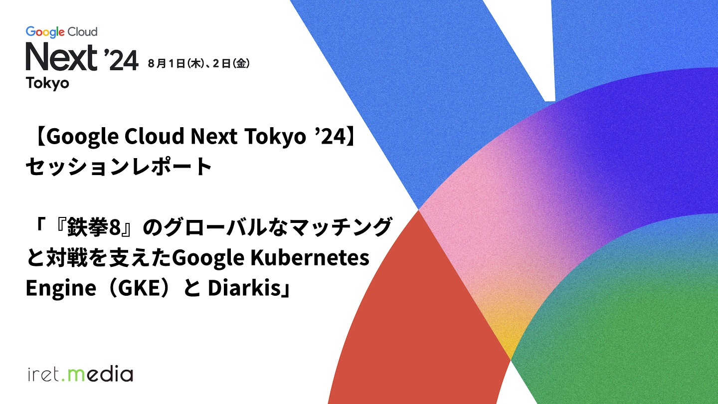 本記事は8月1日〜2日で開催されているGoogle Cloud Next Tokyo ’24の1日目に行われた、「『鉄拳8』のグローバルなマッチングと対戦を支えたGoogle Kubernetes Engine(GKE)と Diarkis」のセッションのレポート記事となります。