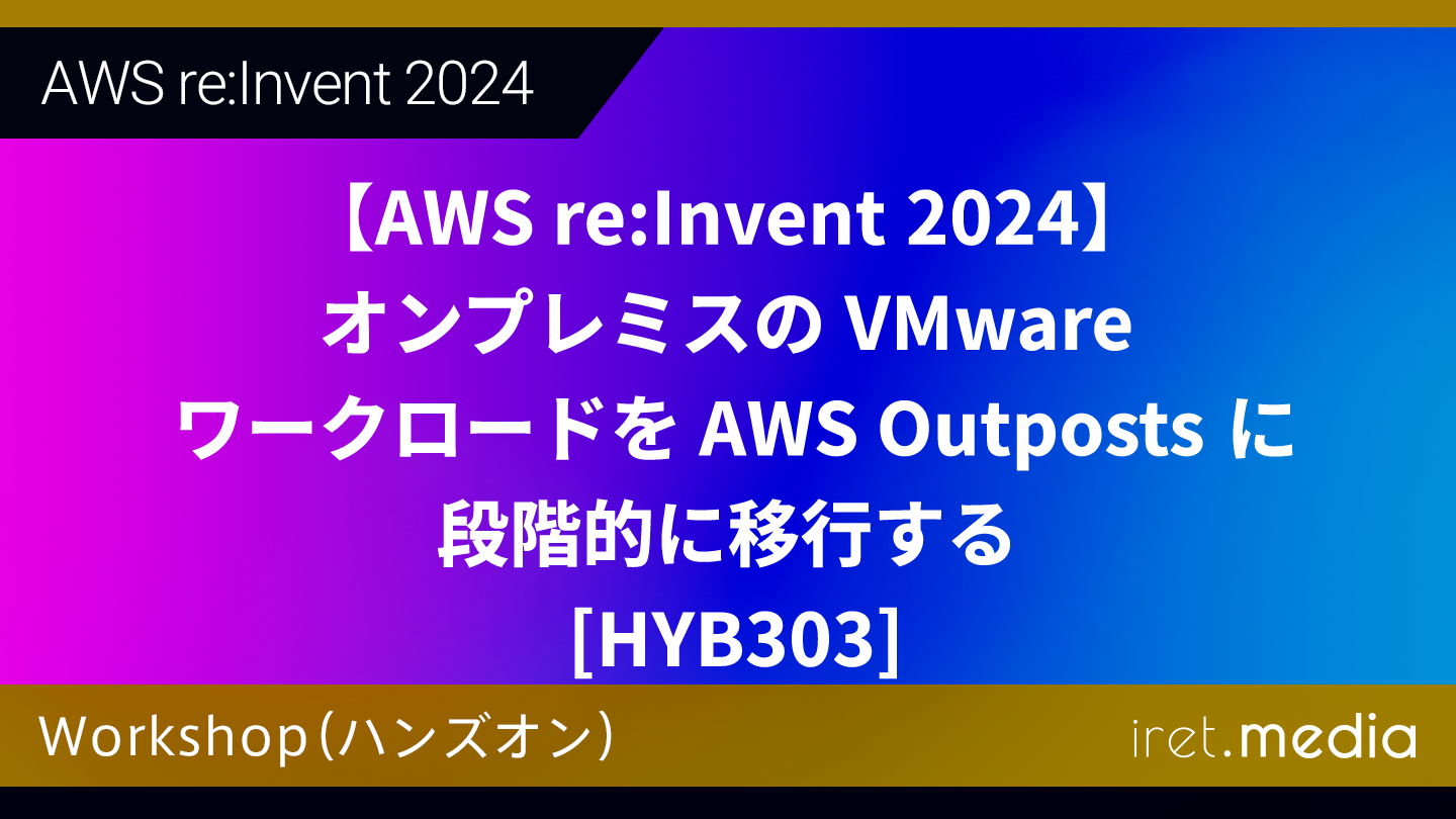 - タイトル(英題):Step-by-step migration of on-premises VMware workloads to AWS Outposts [HYB303]