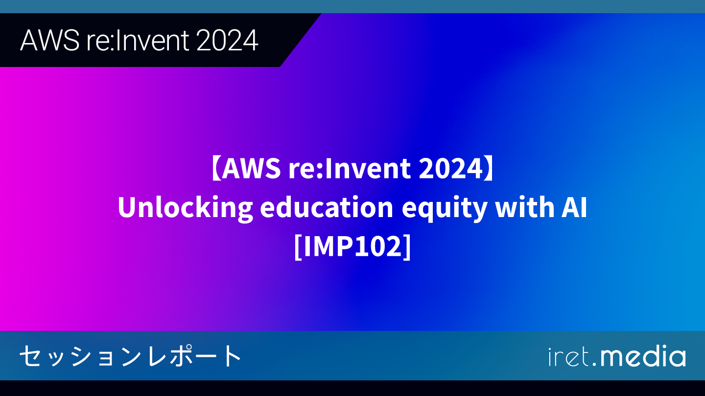 Unlocking education equity with AI(AIで教育の公平性を実現)というタイトルの通り本セッションで扱われるトピックは教育についてです。