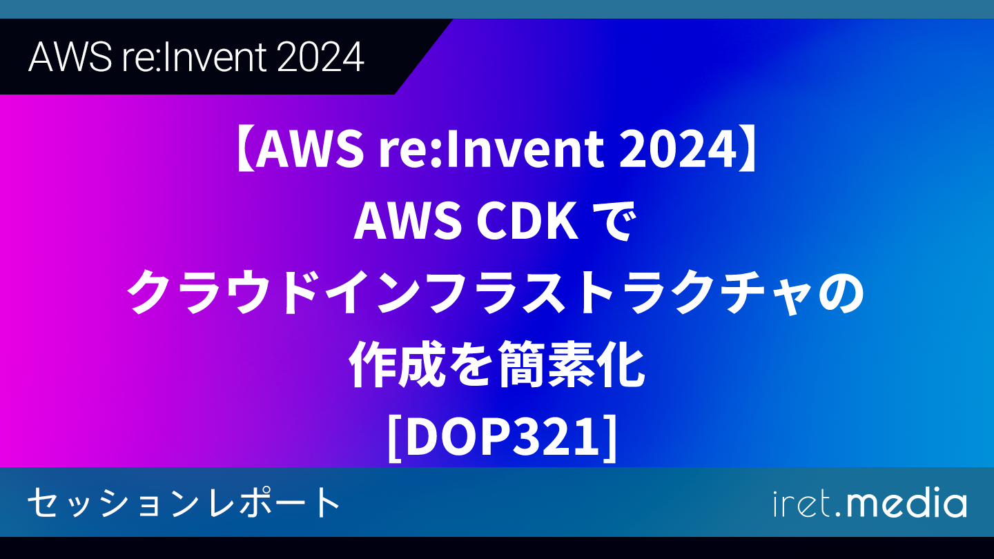 - タイトル(英題):Simplify cloud infrastructure creation with the AWS CDK[DOP321]