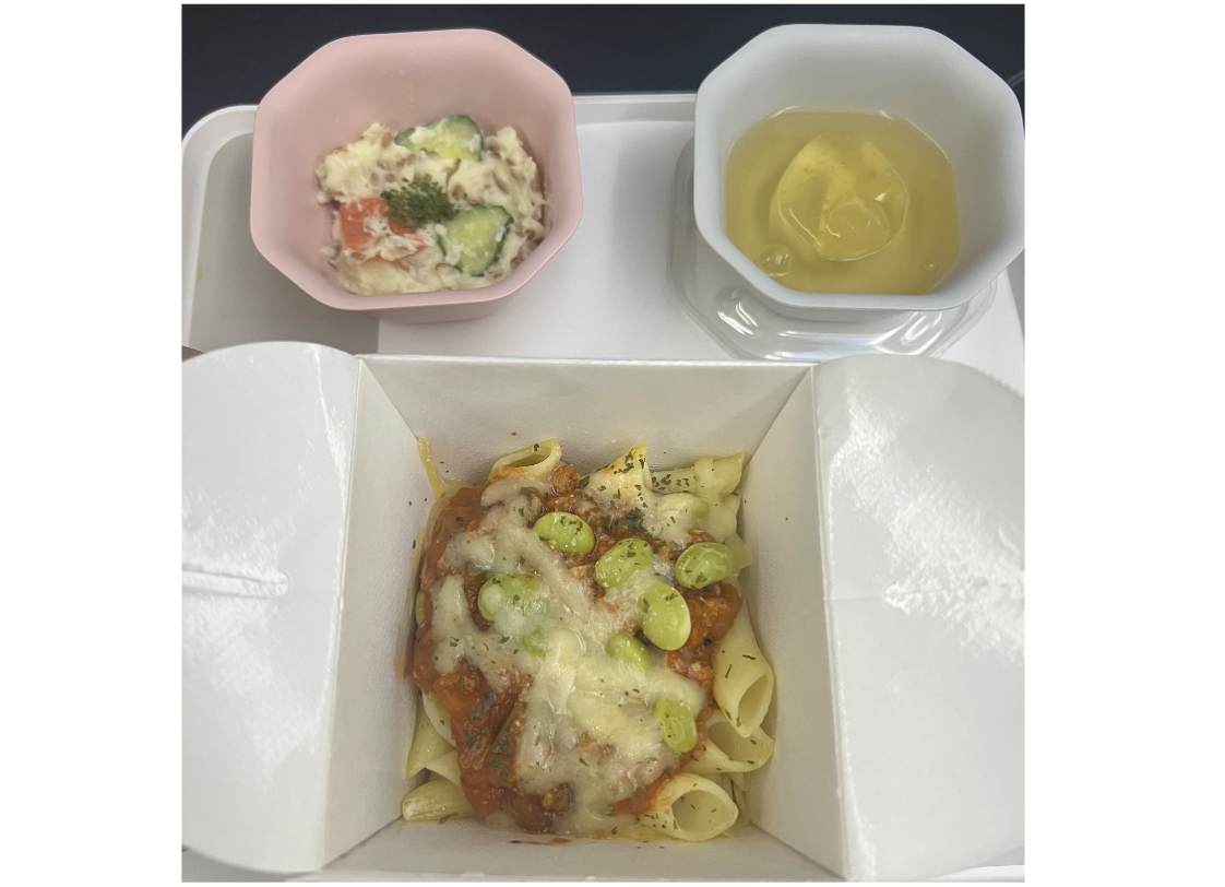 シアトルに向け出発し、最初の機内食は20:15頃(日本時間)でした。