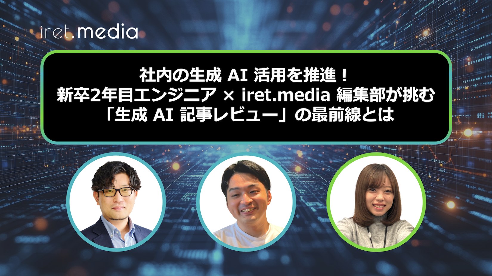 今回は、この取り組みに携わった DX開発事業部 エンジニアの西田 駿史と前野 佑宜、そして実際に「iret.media」を運営する広報 羽鳥 愛美の3人に話を聞きました。