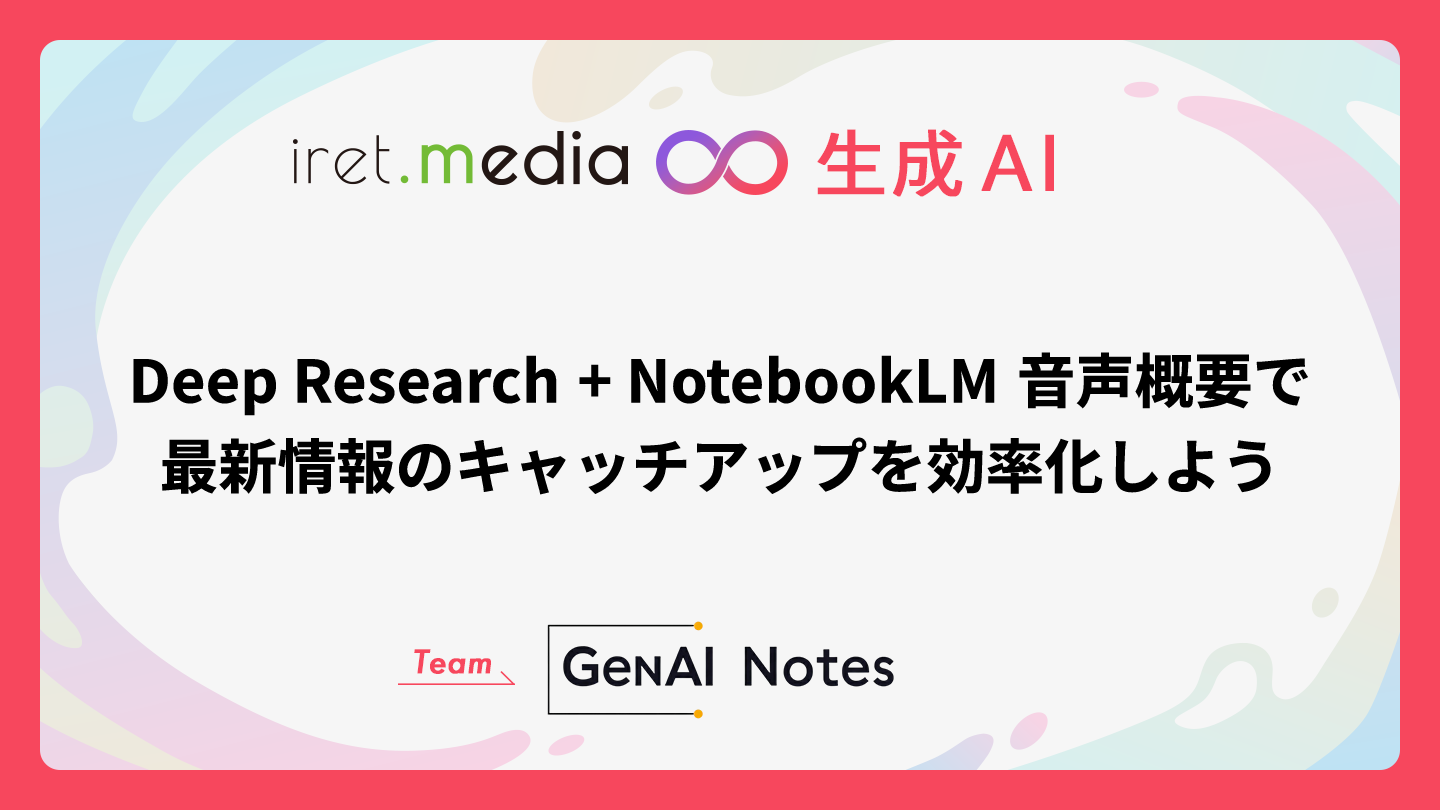 そんな方々に是非試していただきたいのが、Google の Deep Research と AI 搭載ノートツール「NotebookLM」の音声概要機能を活用したキャッチアップ方法です。
