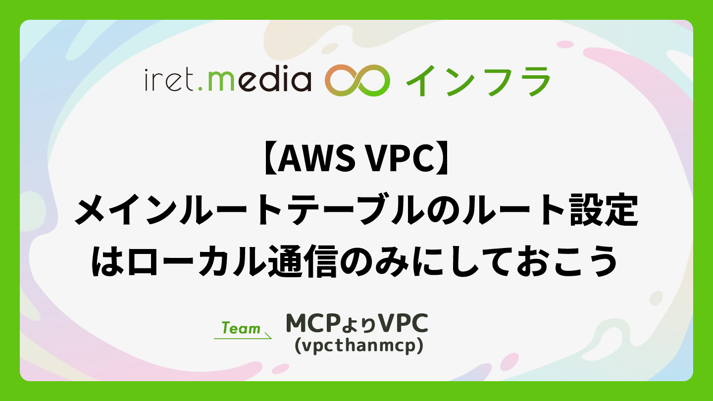 そのため、メインルートテーブルにはローカル通信のみとし、必要なルートテーブルは全て「カスタムルートテーブル」とすることが予防措置として有効です。