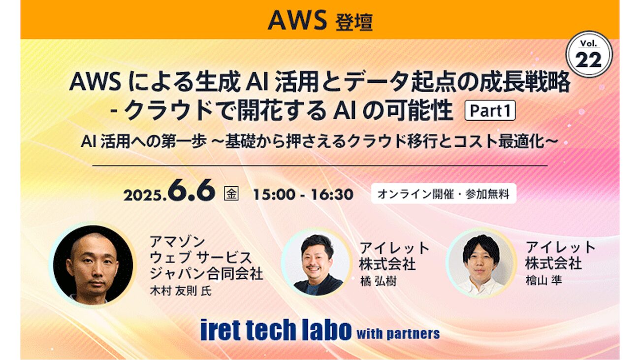 6月6日にアイレットの技術力とパートナー企業様の知見を合わせた、より先進的な取り組みや IT 業界における最新トレンドなどを発信しているイベント「iret tech labo with partners #22」を開催いたしました。