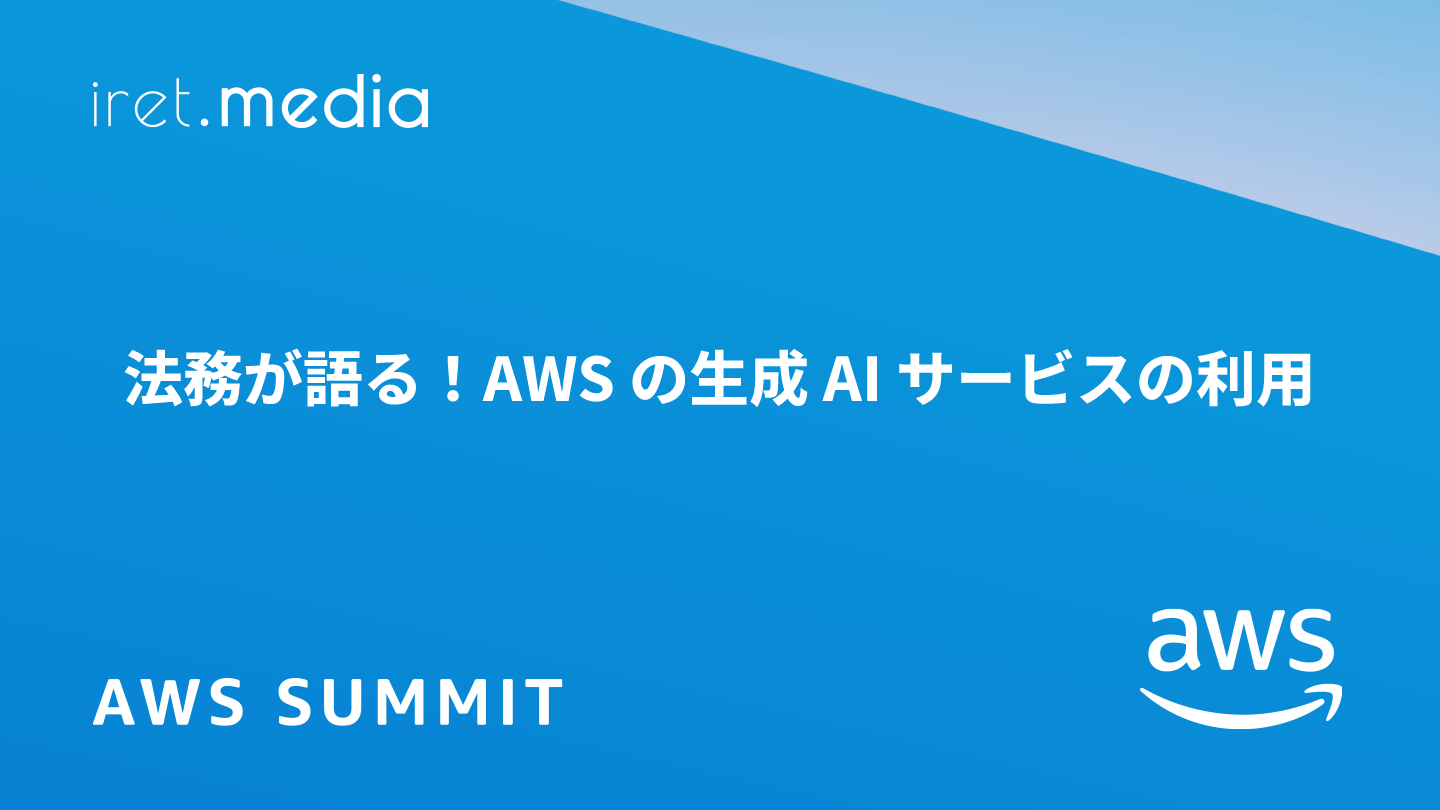 本記事では、AWS Summit Japan 2025 の Day1 にて行われたセッション「法務が語る!AWS の生成 AI サービスの利用」のレポートをお届けします。