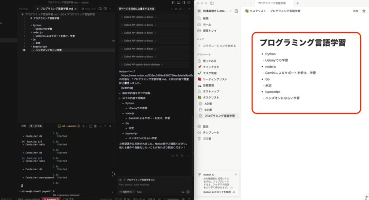 既に作成済みのページをCursor側で読み込み、ファイルとして保存した上で、そのファイルを編集しNotionのページに反映を行います。
