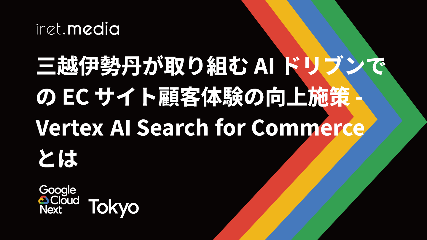 三越伊勢丹が取り組む AI を活用した個客体験の進化について、Vertex AI Search for Commerce (VAIS:C) を用いたソリューションをご紹介。セッションでは、Googler から VAIS:C の特徴を、三越伊勢丹からは本番 EC サイトへの導入事例や CTR 向上などの定量的効果を交えて、小売業の顧客体験改善や VAIS:C 導入を検討する幅広い層に役立つ情報をお届けします