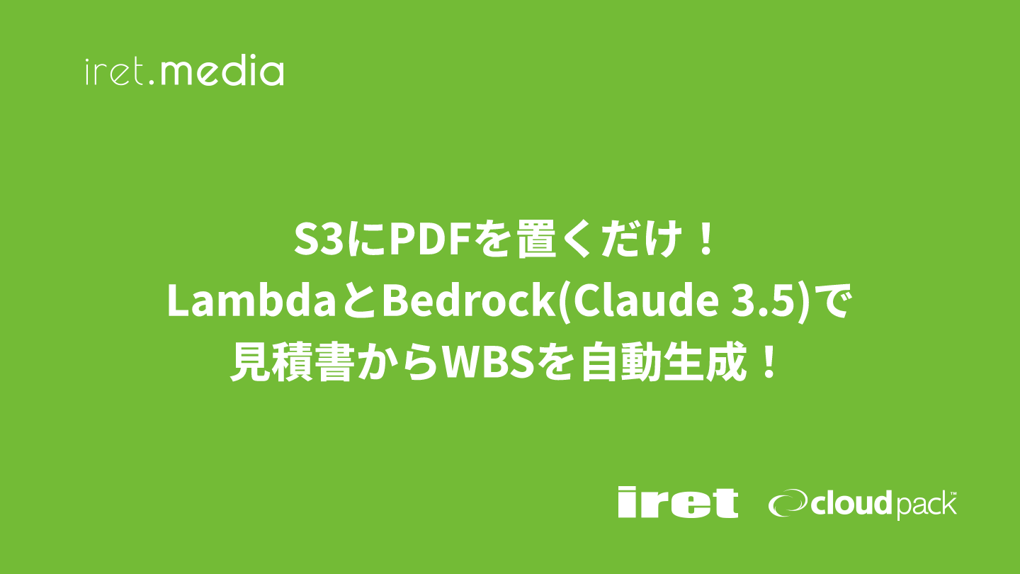 プロジェクトの見積書(PDF)からWBS(Excel)を作成する手作業は、時間がかかり記入ミスも起きやすいものです。この定型業務を自動化するため、「PDFをAmazon S3にアップロードするだけで、AIが内容を読み取り、スケジュールまで計算されたWBSをExcel形式で出力する」サーバーレスな仕組みをAWSで構築しました。