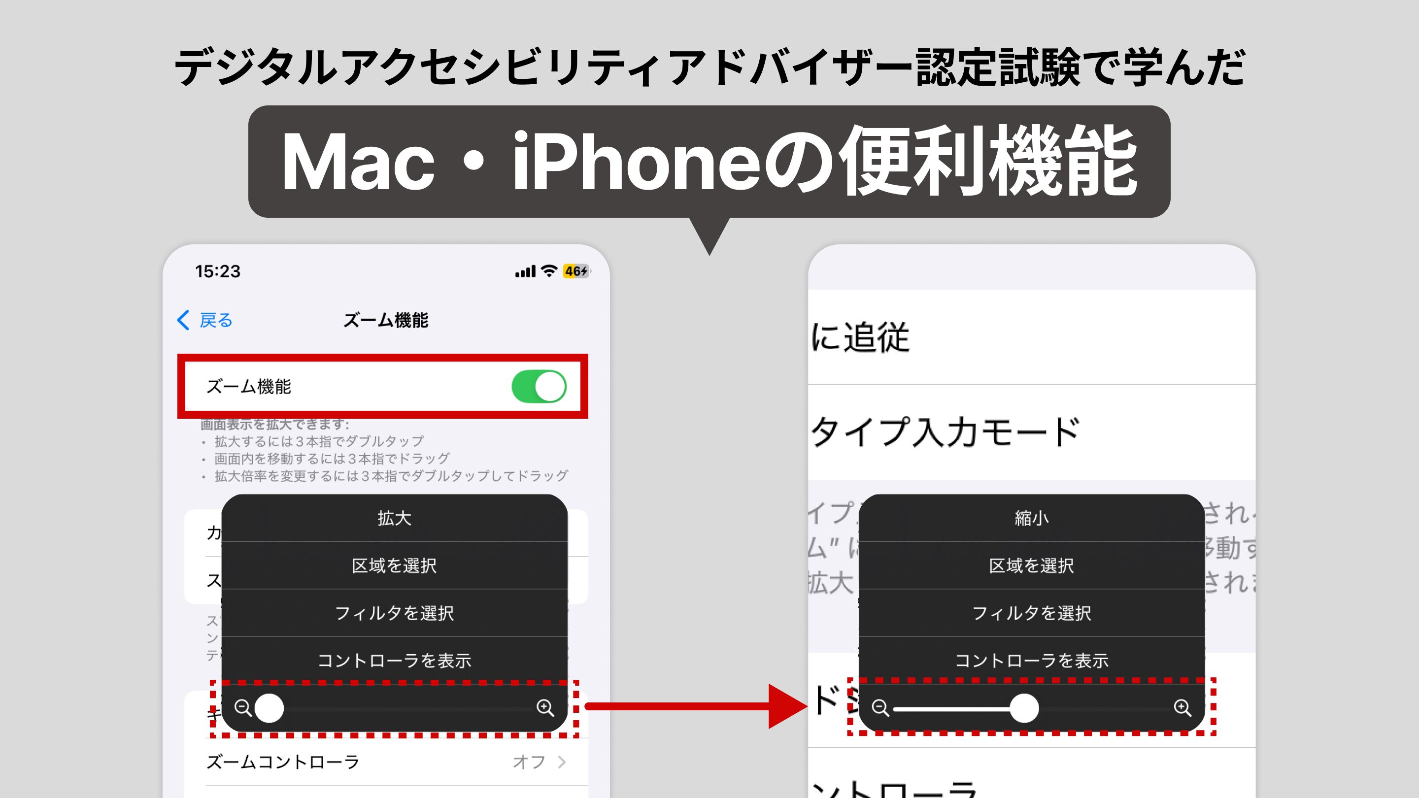 今回は、アクセシビリティ機能の中から健常者にとっても便利な機能をご紹介しました。