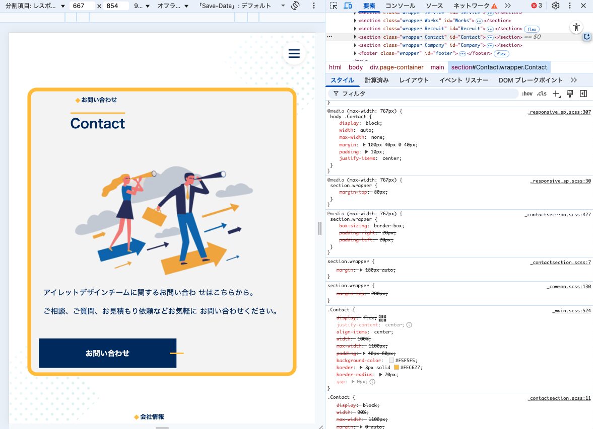 今回のレスポンシブデザインのコーディングでの一番の学びは『開発者モードを積極的に使っていくべき』という部分で、コードの重複や要らない記述の削除なども一気に解決することが出来ました。