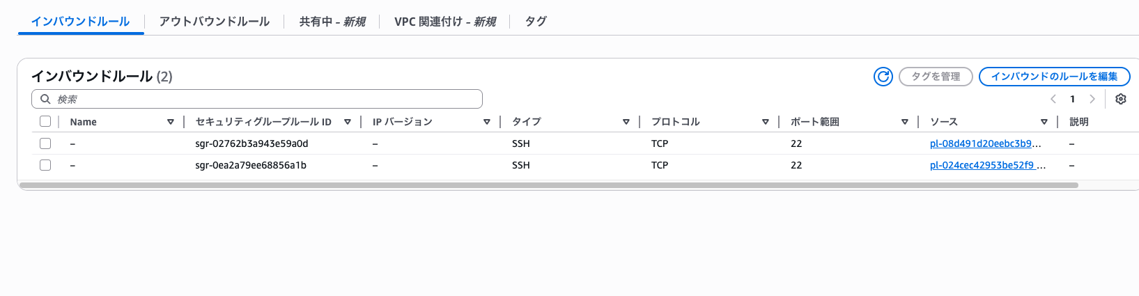 対象インスタンスに接続するリージョンのEC2 Instance Connect サービスのIPアドレスレンジからのSSH接続のインバウンドルールの許可