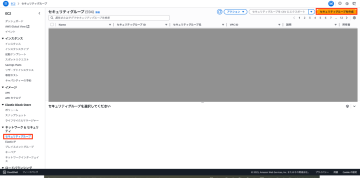 ECサービスに移動し、左のセキュリティグループを選択し、右上のセキュリティグループの作成をクリック