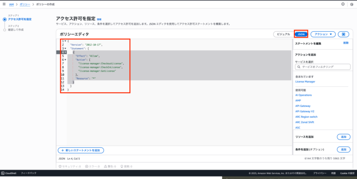 1-1. ライセンスマネージャー用カスタムポリシーの作成