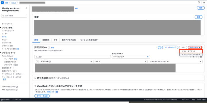 1-2. IAMロールの作成とポリシーのアタッチ