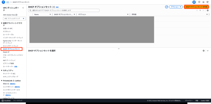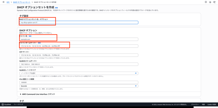 ステップ3:名前解決の安定化 – DHCPオプションセットの設定