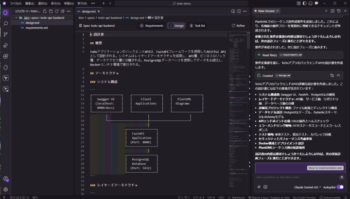 生成された設計書は.kiro/specs/<プロジェクト名>/design.md にMarkdown形式でまとめられます。