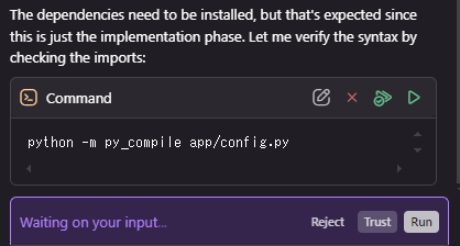他にもタスク実行ではエラーが出た場合、Kiroは内容を解析して解決策を提示してくれます。
