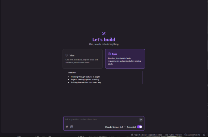 ひとつは、要件定義から設計・タスク分解までを自動で生成する Spec(スペック)機能。