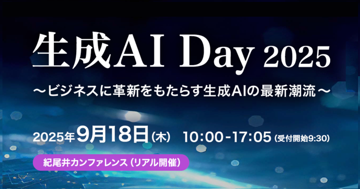 2025年9月18日(木)、株式会社インプレスが主催する「生成AI Day 2025 ~ビジネスに革新をもたらす生成AIの最新潮流~」が紀尾井カンファレンスで開催されました。このイベントにアイレットは、プラチナスポンサーとして協賛し、展示ブースの出展に加え、DX開発事業部の川村 彰 がセミナーに登壇しました。本記事では、イベントの様子をレポートします。