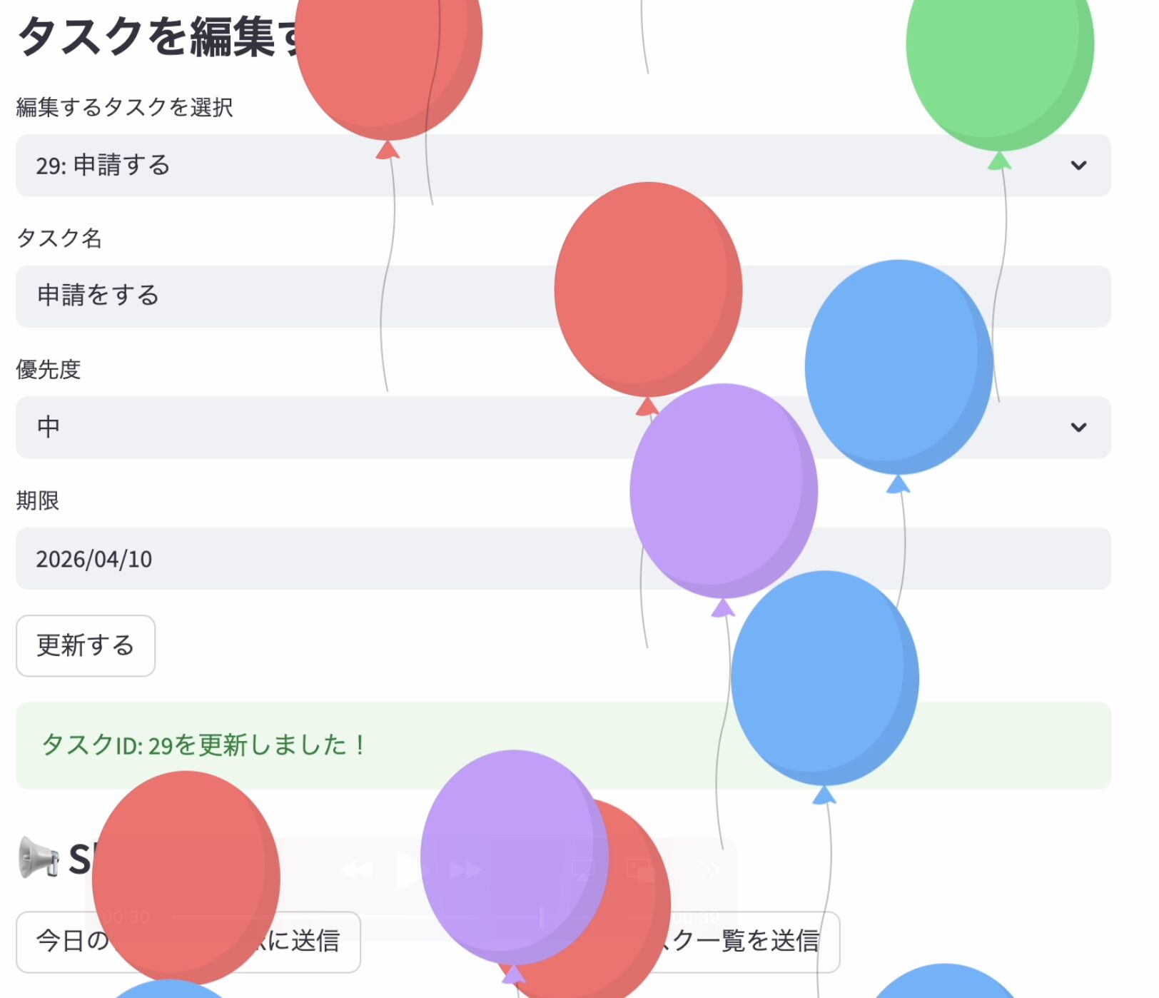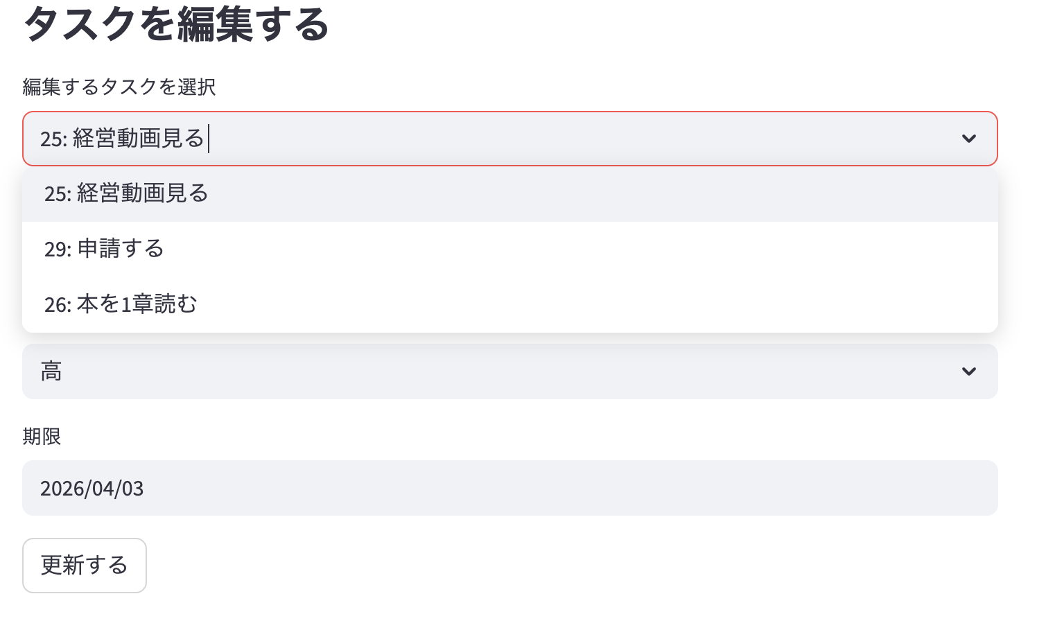 Streamlit側では直接IDを入力するよりもタスク名でプルダウン選択できる方が使いやすいことに気づきました。