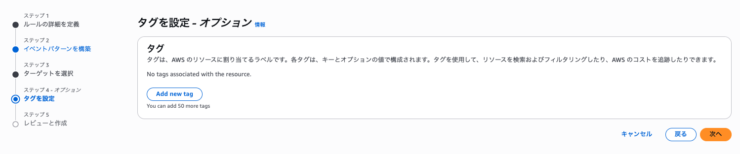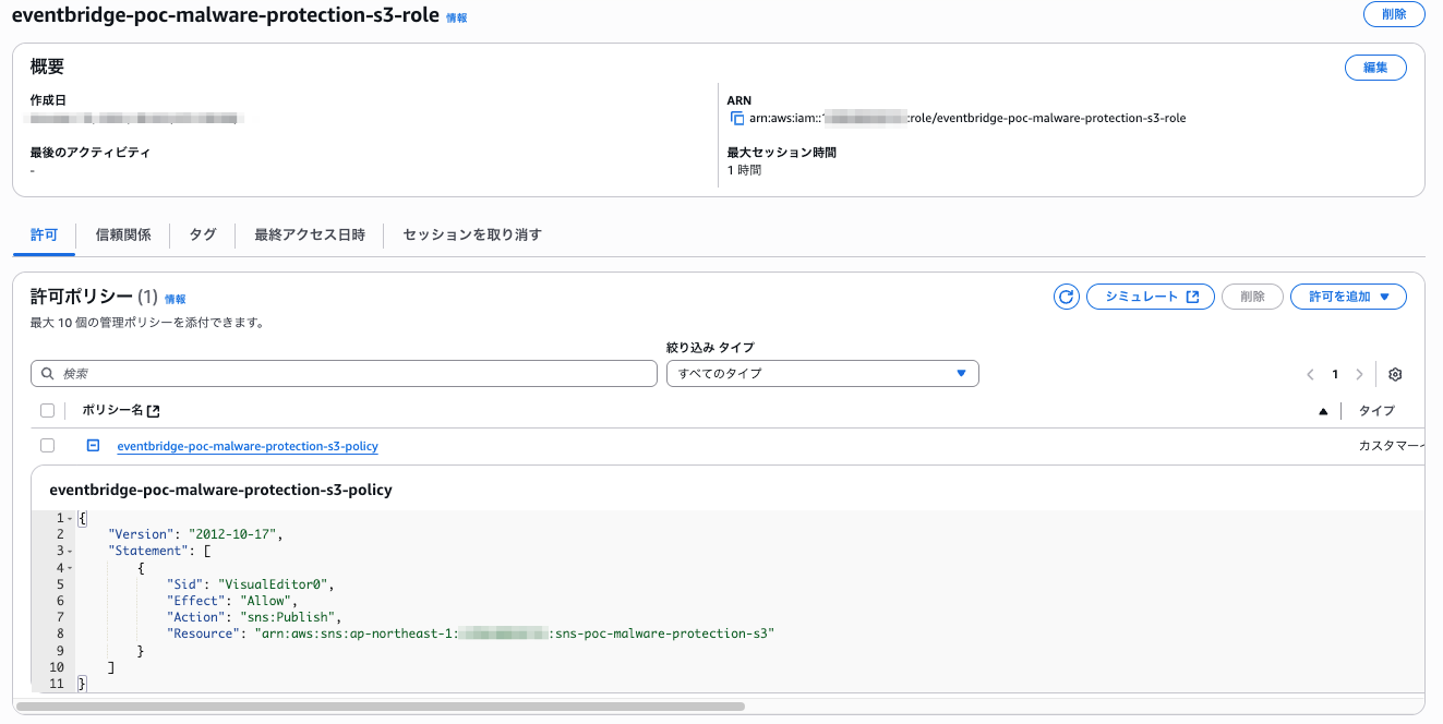 EventBridgeがSNSトピックへメッセージを発行するために必要なIAMロールを作成します。