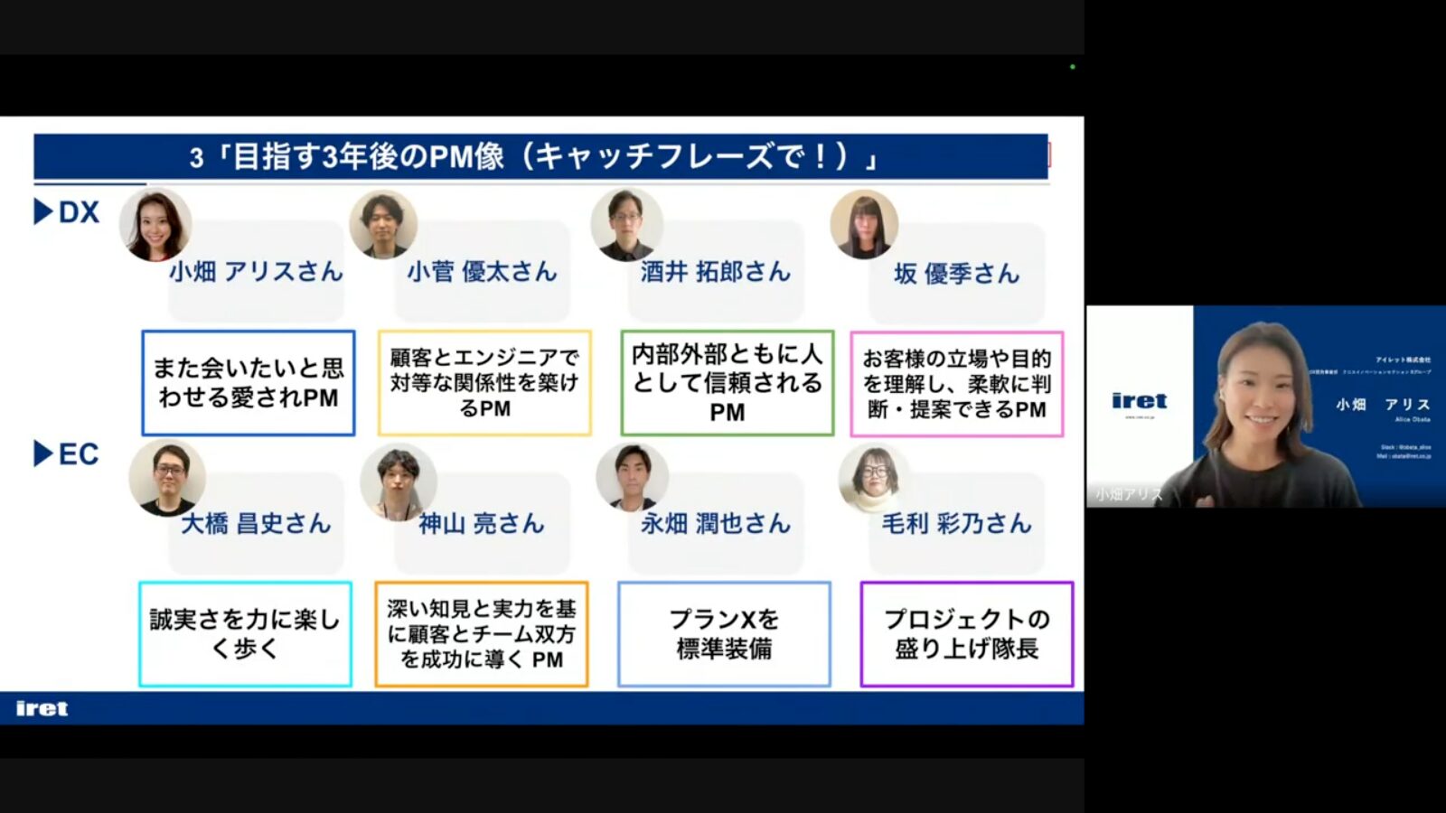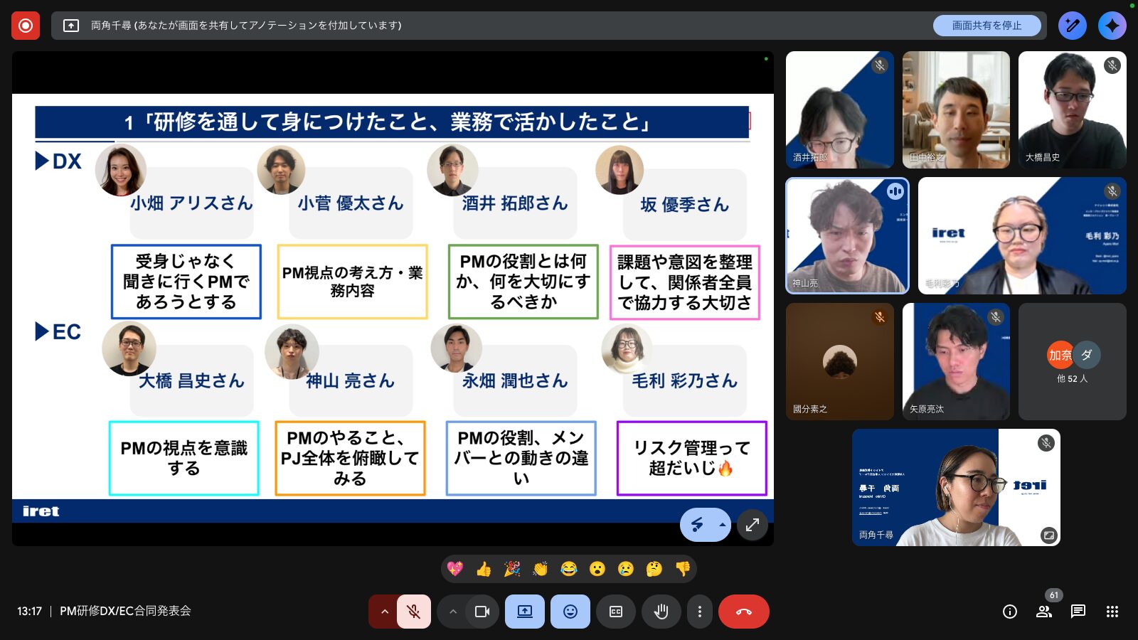 - PMは進捗管理する偉い人という印象だったが、研修を通して、ユーザーに価値を届けるプロジェクトの船長だと思うようになった(EC事業部・毛利彩乃さん)