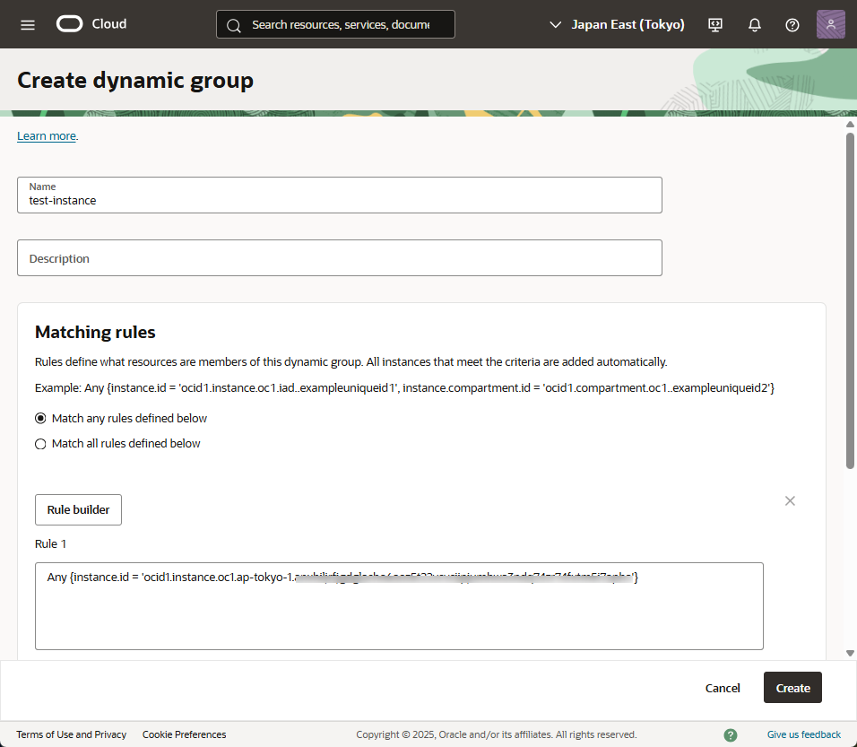 - 「Create」を選択し、dynamic group を作成します。