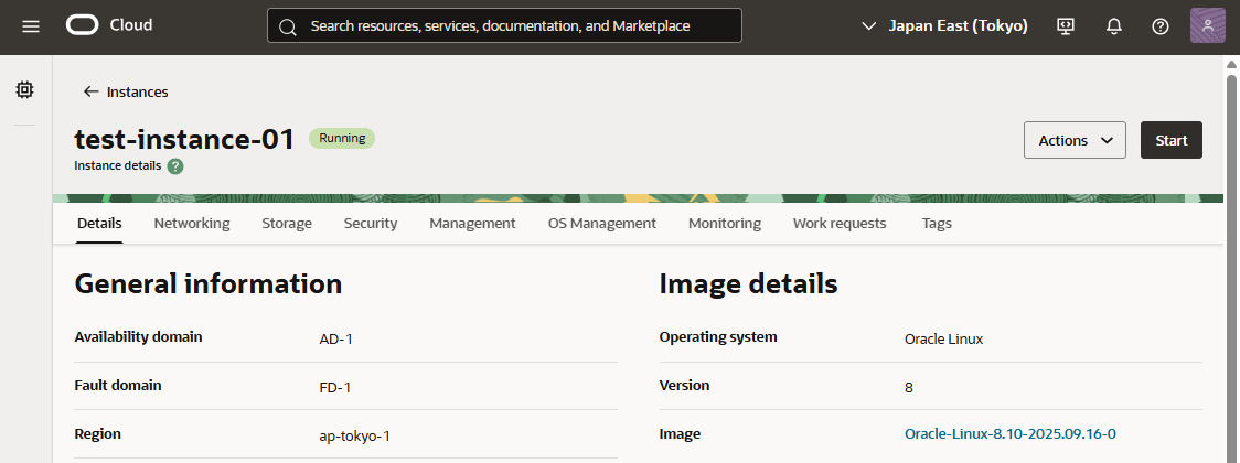 - インスタンス(Oracle Linux 8) が起動しました。