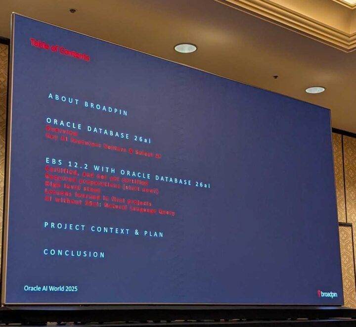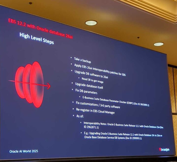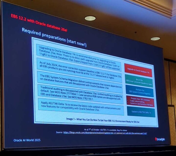 今回は、「Oracle DB 23ai & EBS: Best Practices & Lessons Learned from First Upgrades」に参加しましたので内容を紹介します。