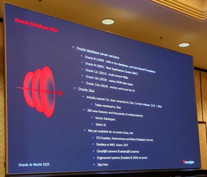 本セッションのメインテーマではありませんが、Oracle Databaseの最新リリースは、「23ai」でしたが、本日「Oracle Ai Database 26ai」が発表されました。