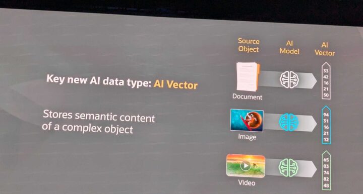 ドキュメントや画像、動画等のような複雑なオブジェクトをAIモデルを通してAI Vectorの生成が可能とのこと。
