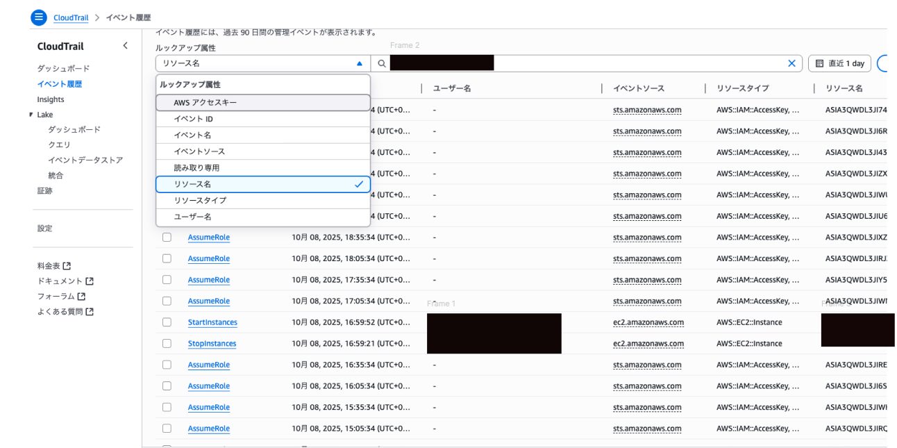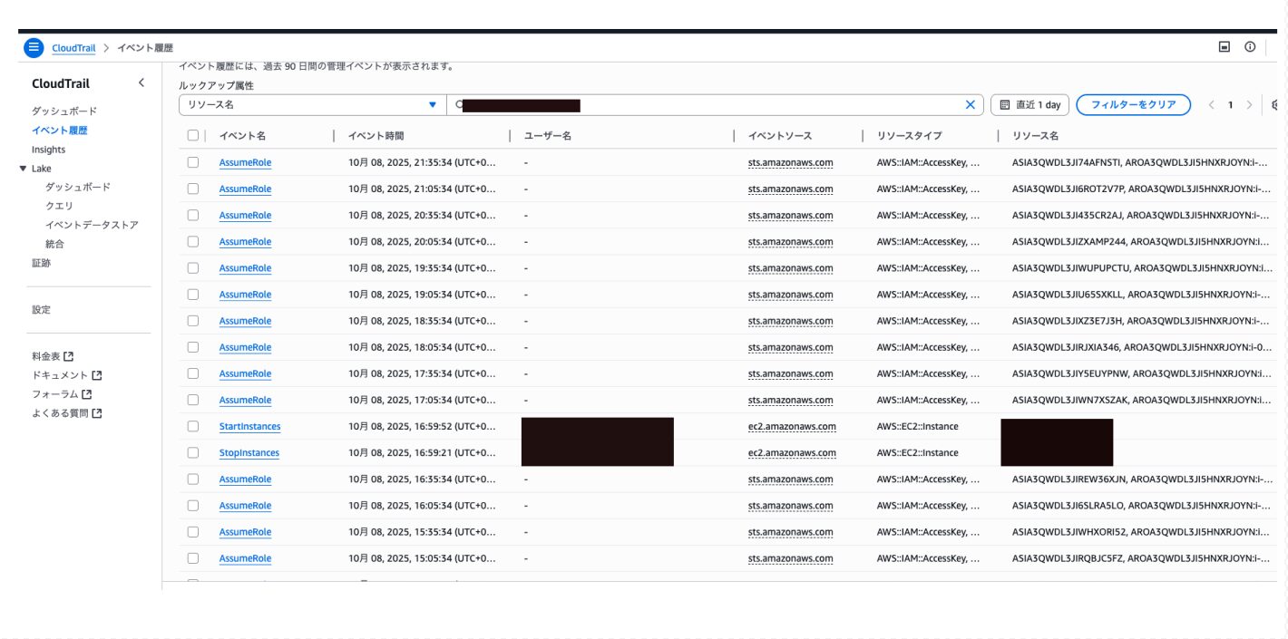 以下のスクリーンショットは直近1日で自分が今活用しているEC2インスタンスのイベント記録です。