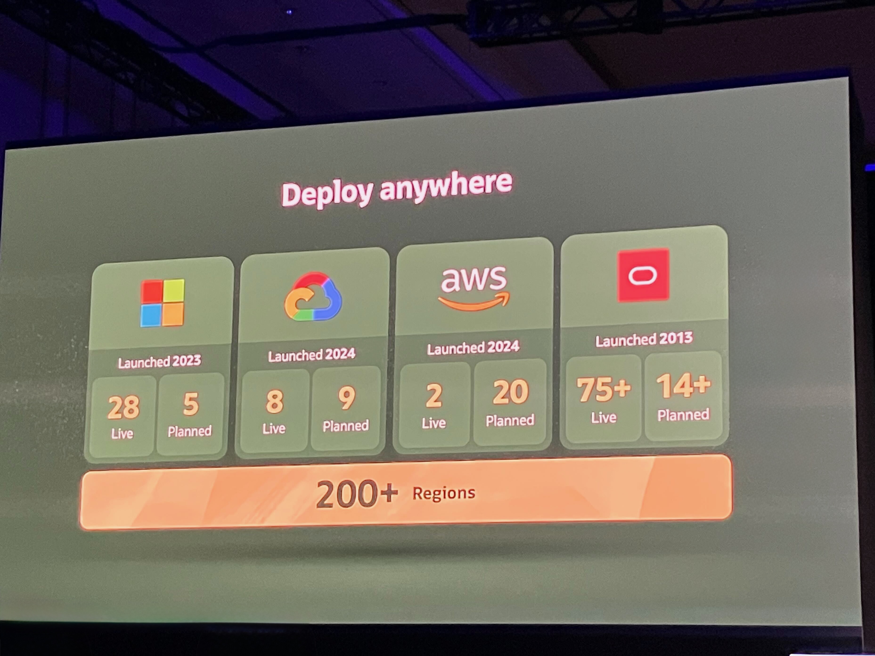 Oracleのデータベースサービスが、AWS、Azure、Google Cloudといった主要なハイパースケーラー全域およびOCIにわたり、200以上のリージョンで利用可能になりました。