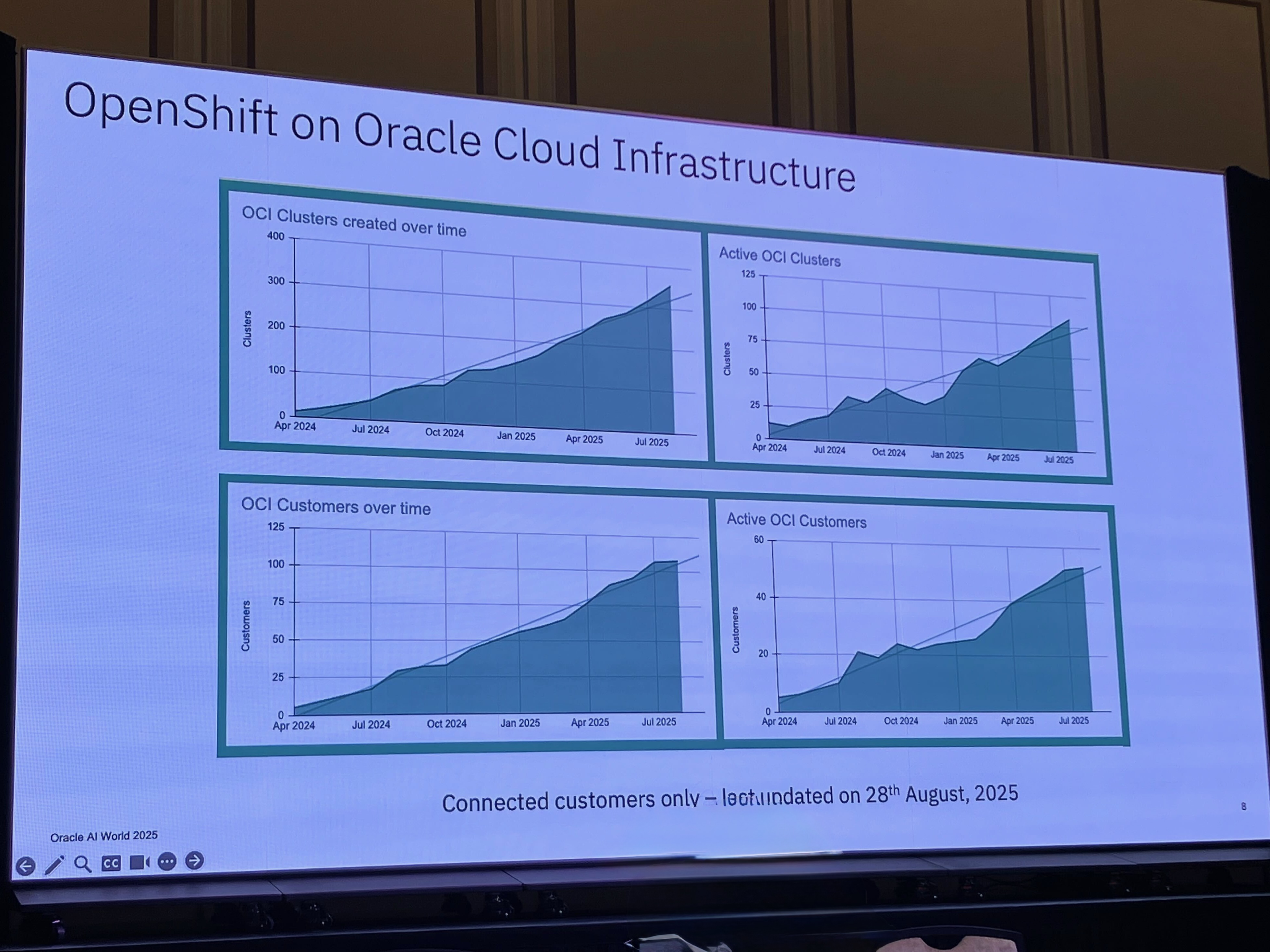 OCI上でOpenShiftを利用する顧客数は、この1年で約7倍に増加しているとのこと 。