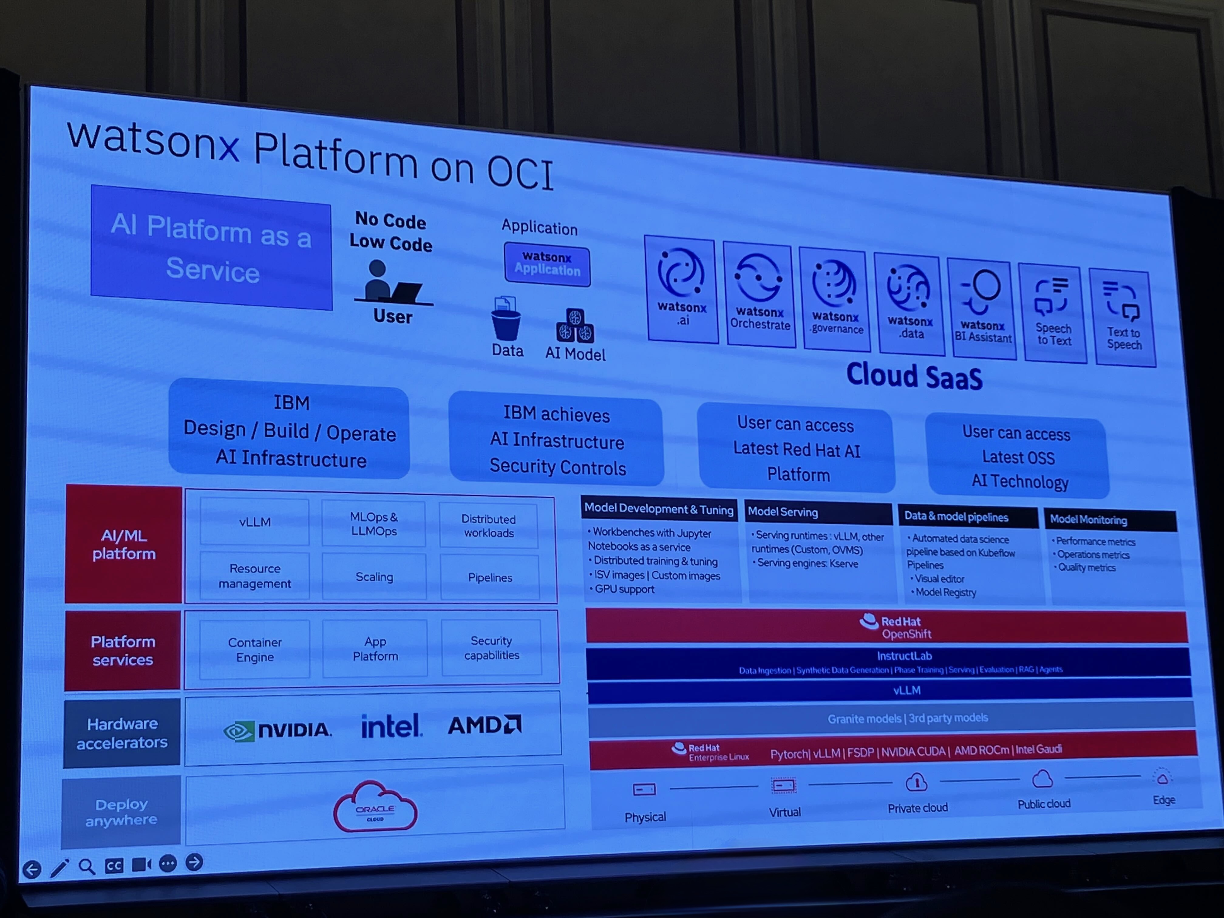 - watsonx Platform on OCI:IBMのエンタープライズ向けAIプラットフォーム「watsonx」をOCI上で提供します。これにより、OCIの高性能なインフラの上で、信頼性と透明性を備えたAI開発・運用が可能になります 。英国の政府機関での導入事例も進行中とのことです。