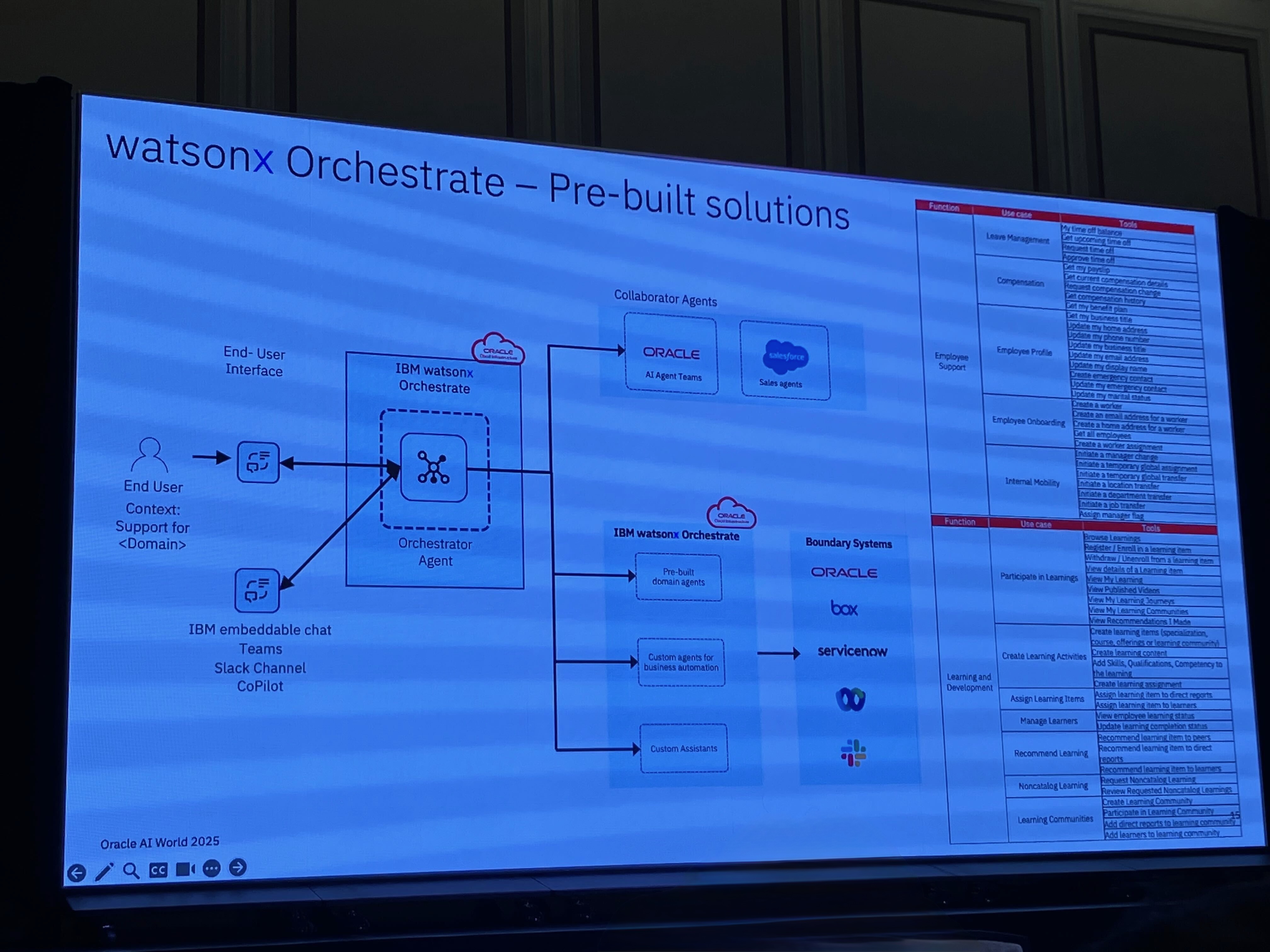 - watsonx Orchestrate:様々なアプリケーションやツールをAIエージェントとして連携させ、業務プロセスを自動化するプラットフォームです。これをOCI上で動かすことで、Oracleの各種サービスとシームレスに連携した自動化が実現できます。