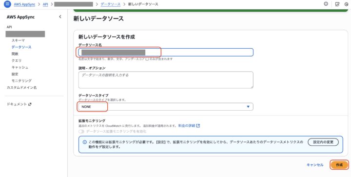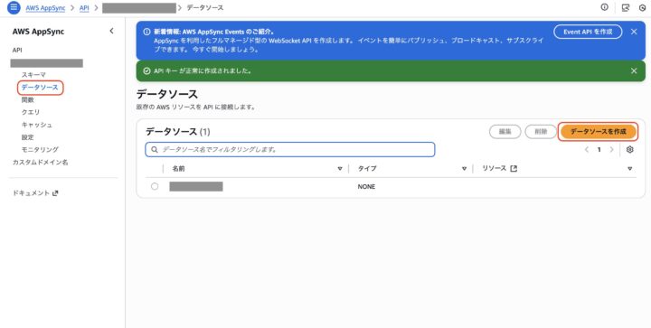 次に、リゾルバーを紐付けるためのデータソースを作成します。