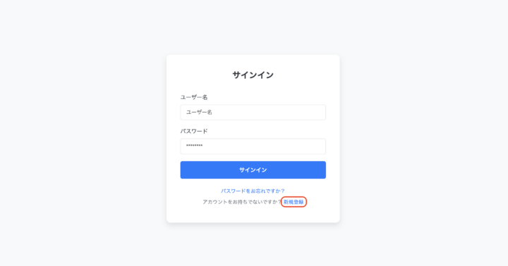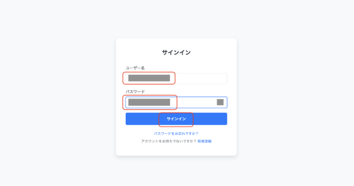 自動的にサインインページに戻るので、先ほど登録した「ユーザー名」と「パスワード」でサインインします。