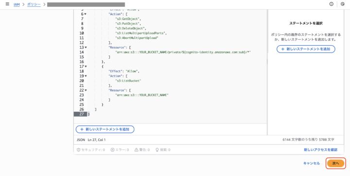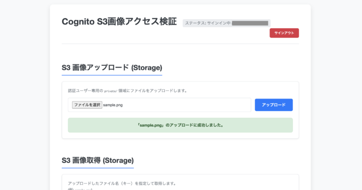 これで、Cognitoによる認証と、認証されたユーザーのみがS3の特定領域にアクセスできる一連の流れが完成しました!