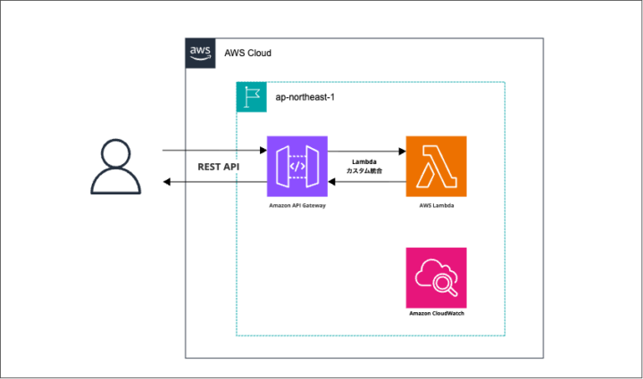 そのため、ここでは、実際のAPI Gatewayを使用するアーキテクチャを対象に、API Gateway独自の設定項目の用語や具体的なデータ形式などを解説していきます。なお、API Gatewayを使用するアーキテクチャはAWSで提供されているチュートリアル: Lambda 非プロキシ統合を使用して REST API を作成するを参考に作成します。