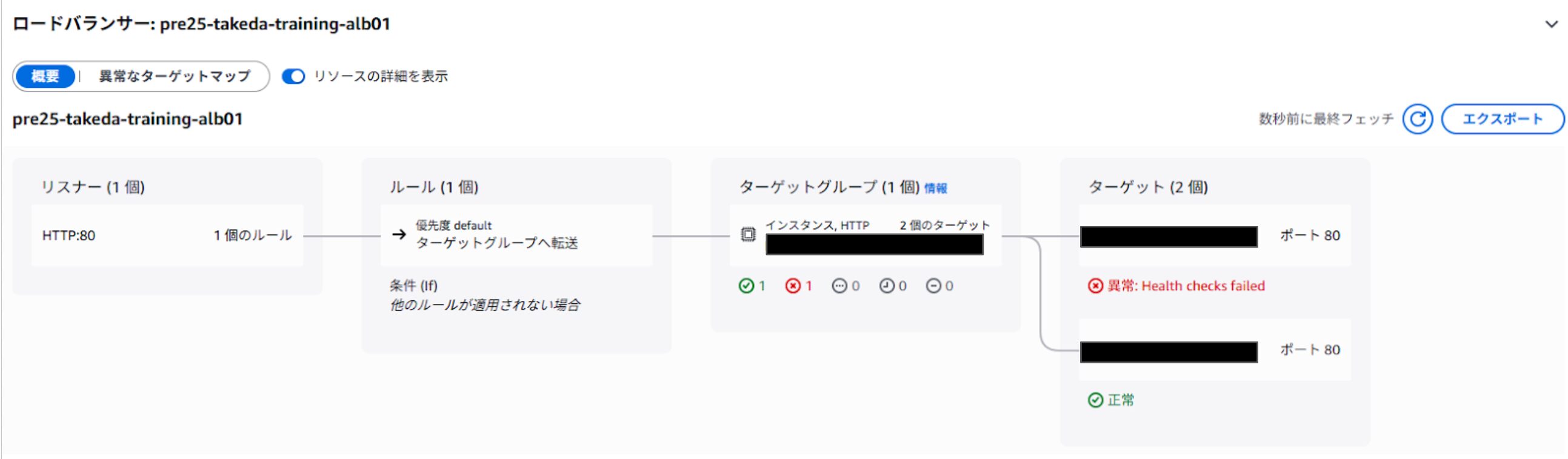 ELBは受信したトラフィックをターゲットグループに含まれるインスタンスに振り分けます。この時、ヘルスチェックで正常だと判断されたインスタンスにのみトラフィックが振り分けられるようになっています。
