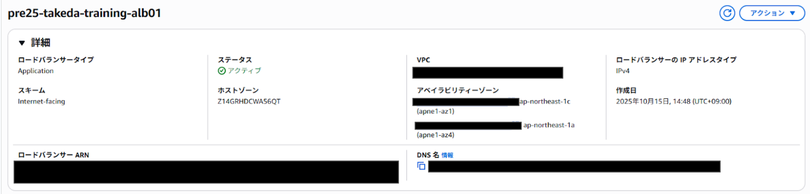 構成図通り構築してみましたのでマネジメントコンソール上で確認してみましょう。
