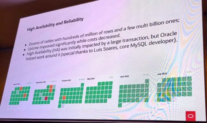 メンテナンス中のダウンタイムを6倍改善し、10秒未満に短縮したことや、予期せぬシナリオにおける非計画的フェイルオーバーを7倍短縮したという話がありました。