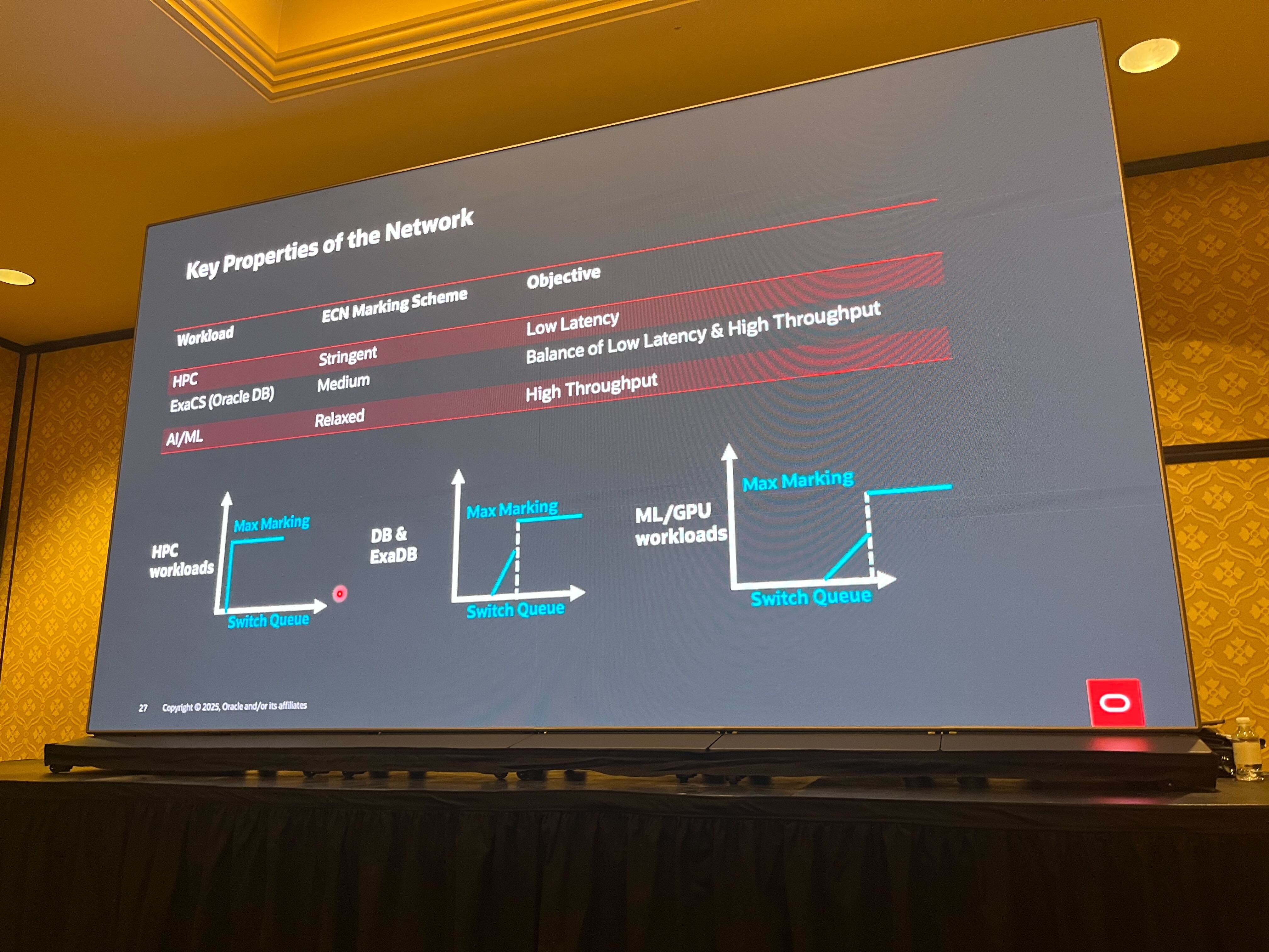 本セッションでは、OracleのVice President兼Distinguished Engineer:Jag Brar氏とNetworking Architect:David Becker氏が登壇しました。セッションではOCIがどのようにしてAI時代の要求に応えるZettascale Clusterを構築したのか、特に、ミッションクリティカルなアプリケーションに求められる低遅延・高スループットをどの様にして実現したのかが解説されました。