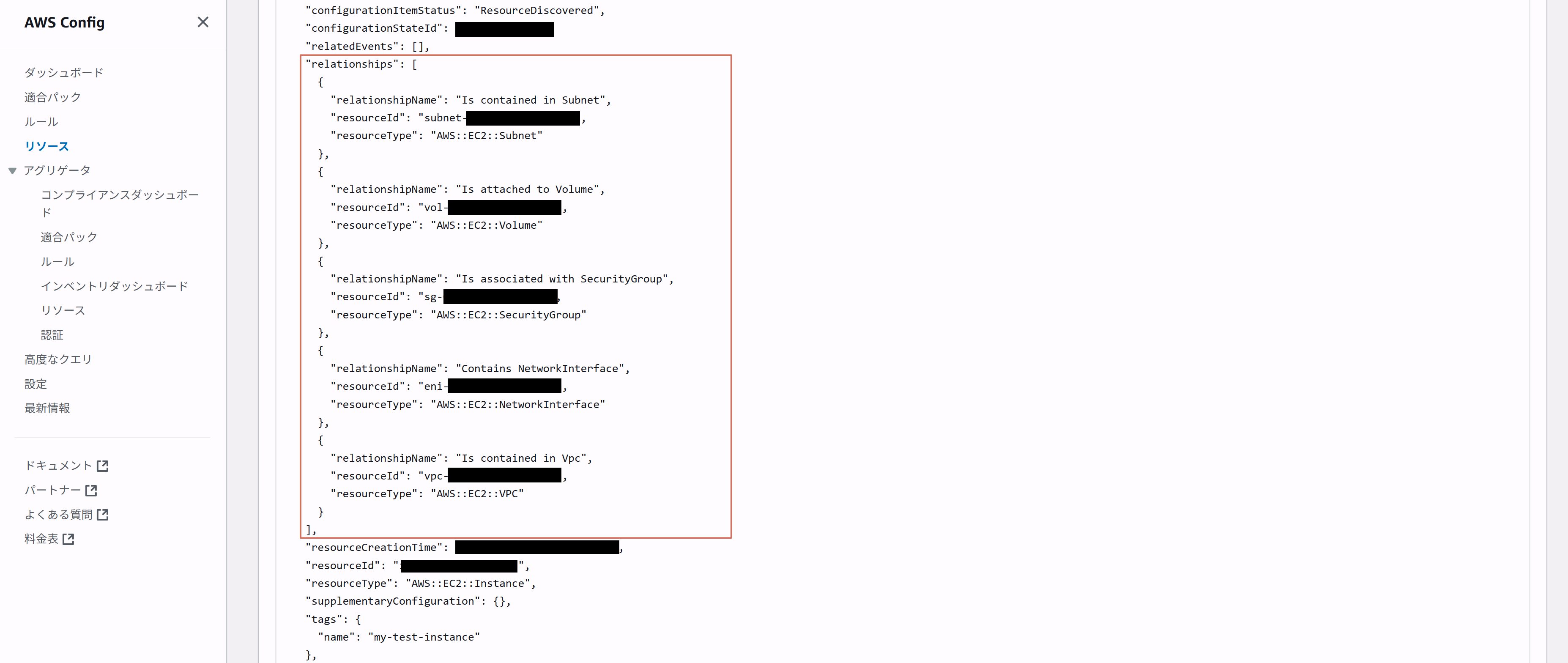 次のようにこれらの関係性をマネージメントコンソール上で確認することで、リソース間の依存関係を一覧で把握できます。