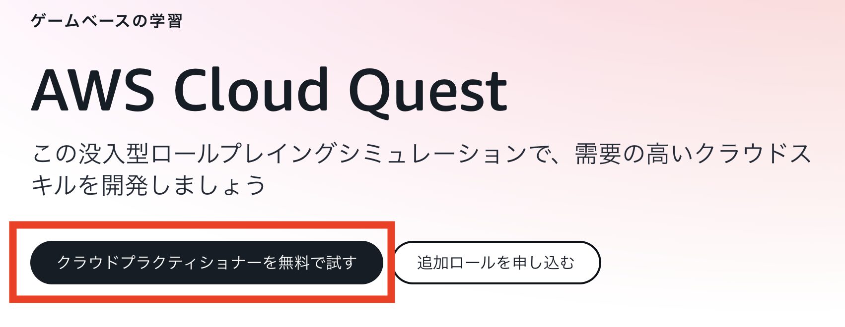 AWS Cloud Quest: Cloud Practitionerをクリック。(日本語版であることも併せて確認する。)